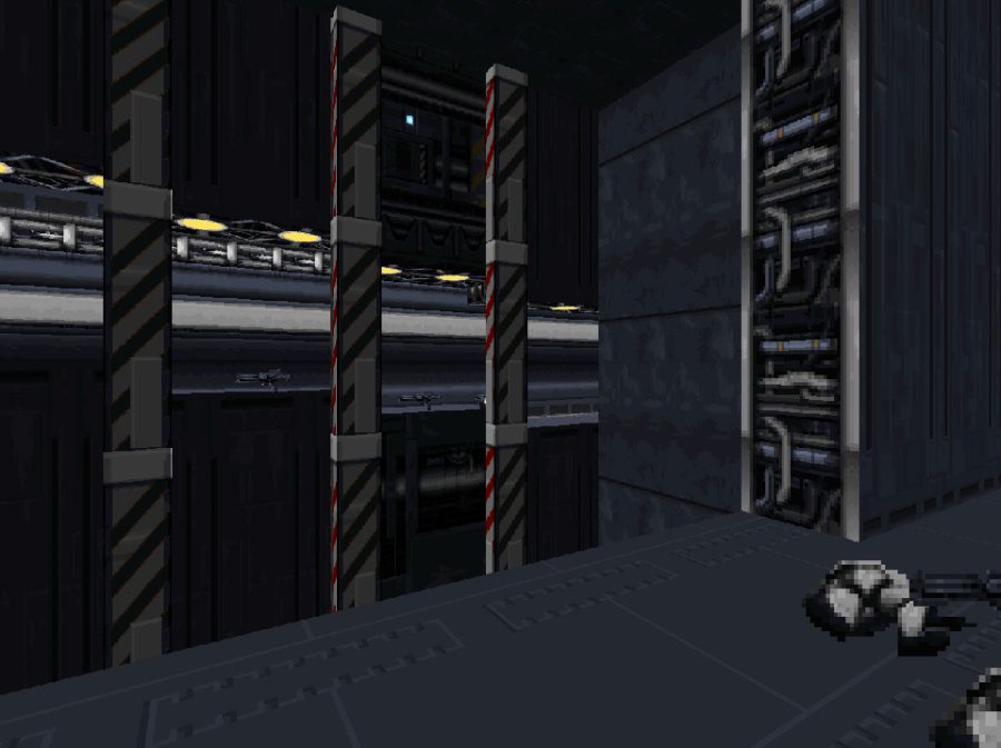 In the beginning of the last level there is a bridge and the player has to find a way to activate it. The switch to activate it is located far away in an empty room. Doom had such design decisions that forces the player to explore the environment and it's mostly for good. In here, however, it's confusing because the player is inside a warship and many many things require the same type of switch to be activated. The design of this gap is also wrong because the player can run and jump across it, rendering the bridge and the switch useless.